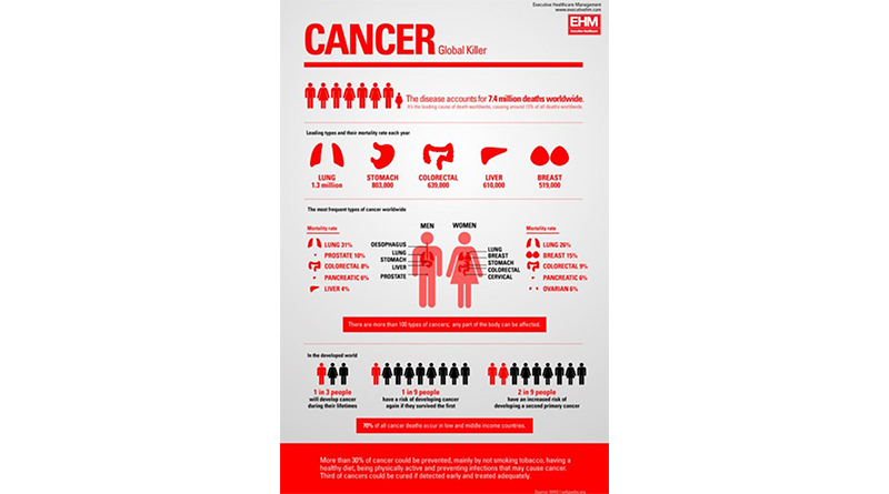 Postoji više od 100 vrsti raka, a svaki dio tijela može biti njime napadnut. Pogledajte statističke podatke WHO-a u infografici: